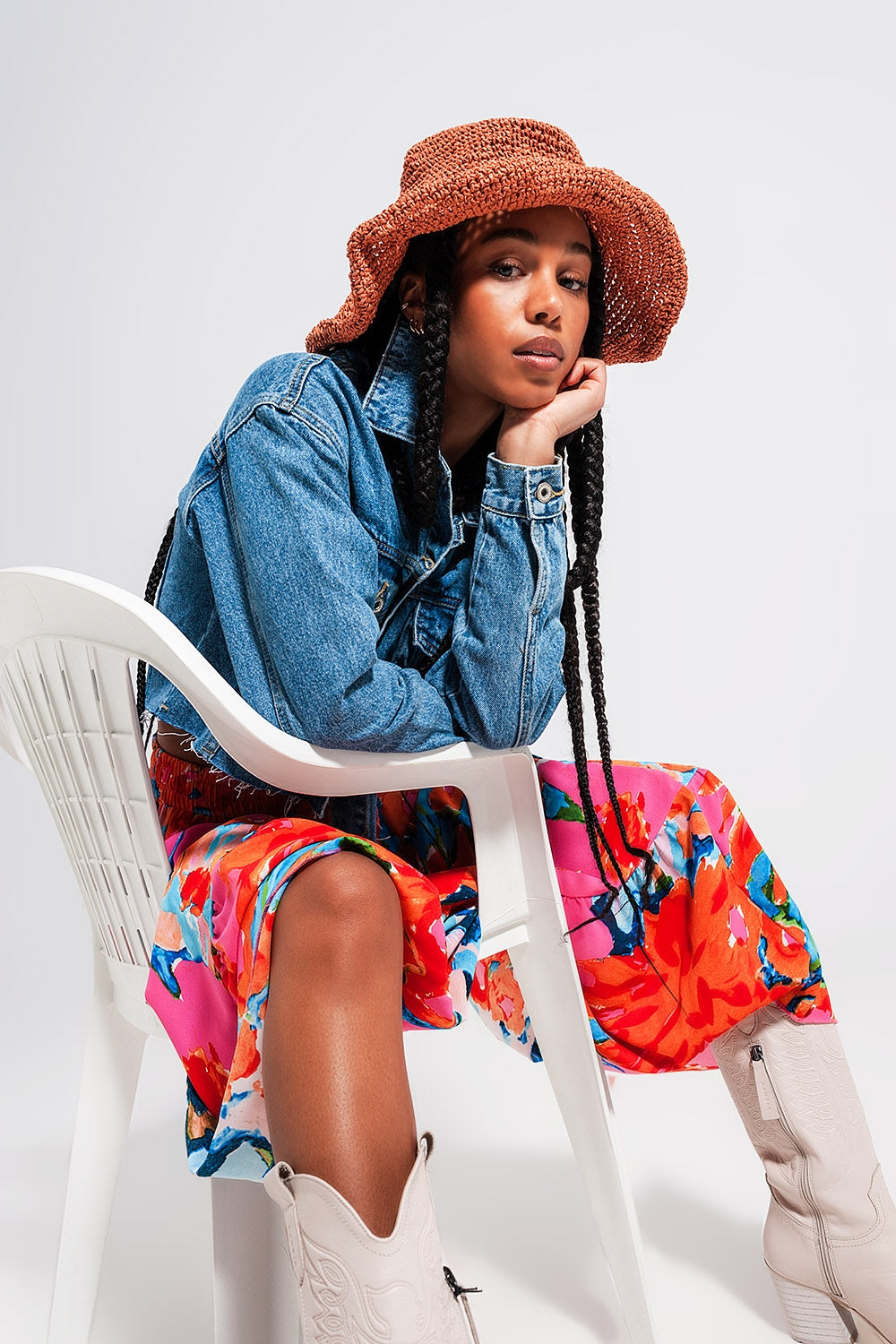 Cropped Denim Jacket With Raw Hem in Mid Wash