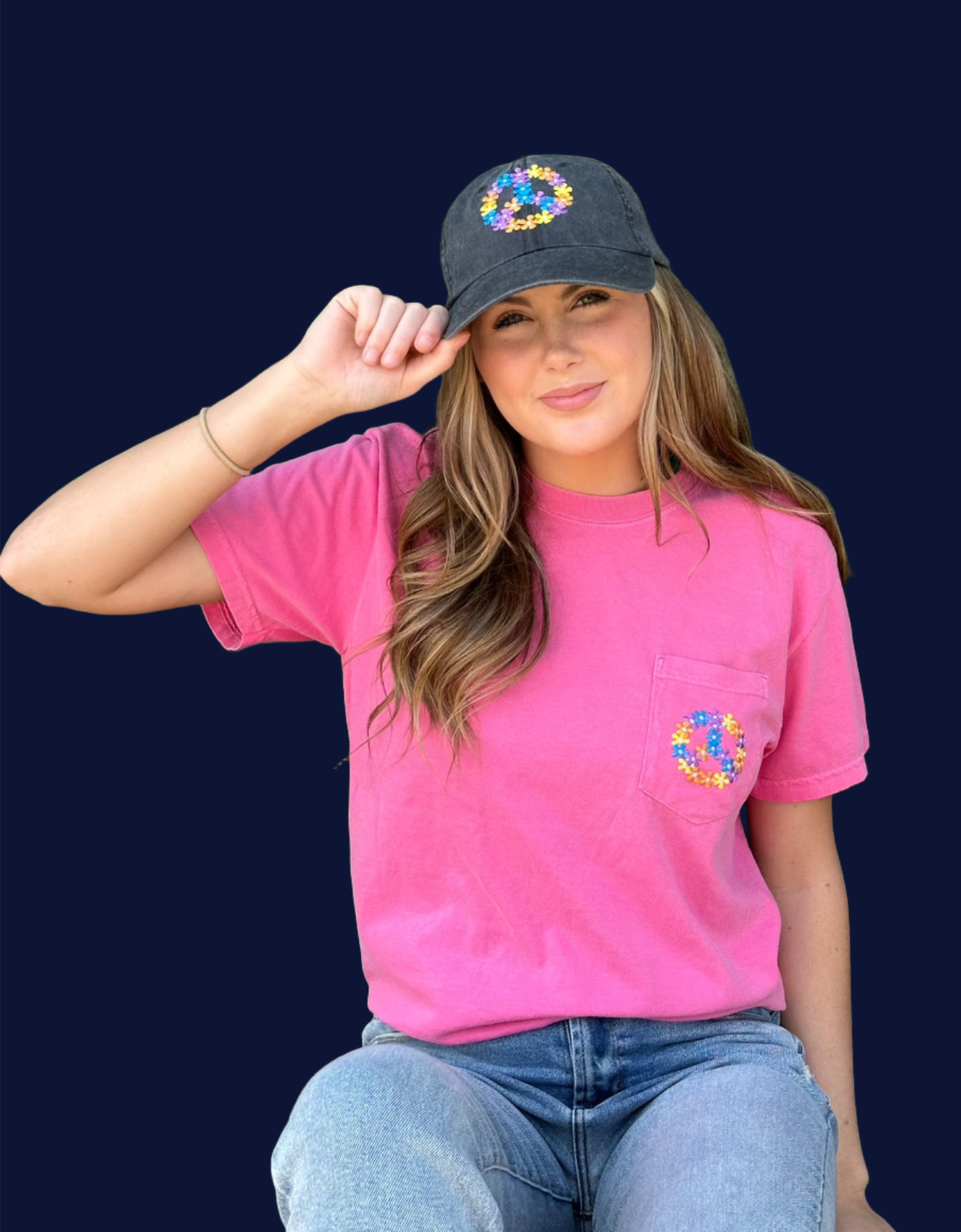 Spread good vibes with our Embroidered Pocket Peace Tee. This playful tee features an embroidered peace sign pocket, adding a touch of uniqueness to your everyday wardrobe.