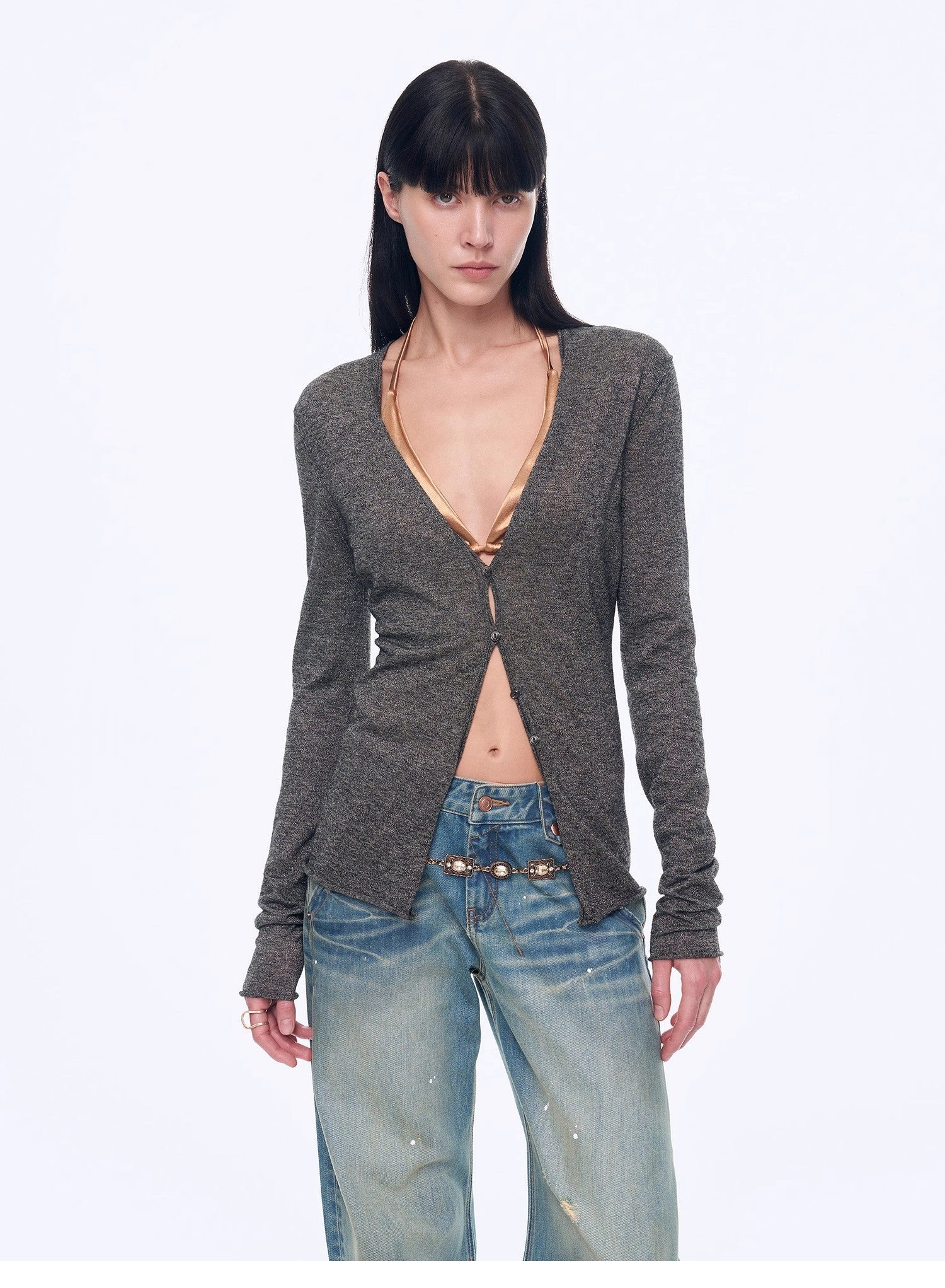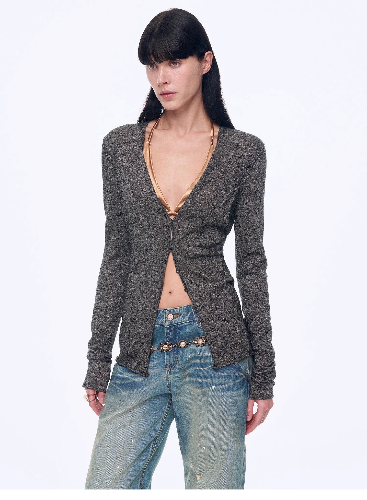 Slightly waisted V-neck