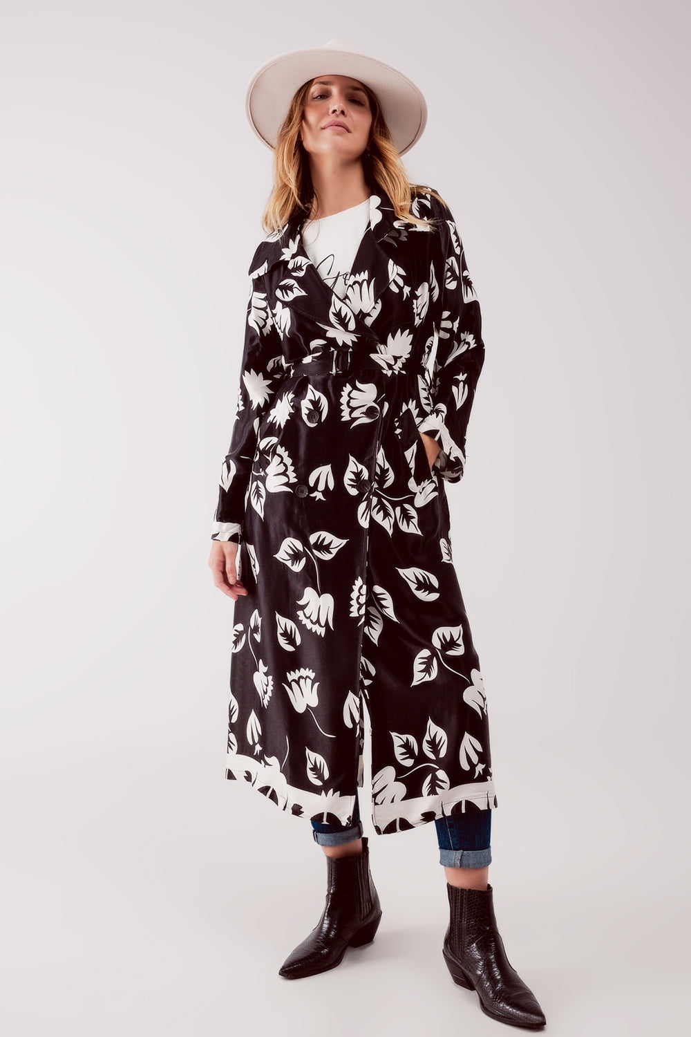 Length: Full length. Subcategory: Blazer. Collar: Shawl lapels. Sleeves: Long Sleeves. Print: Floral print. Fit: Relaxed fit. Style: Daily. Detail: Belt of same fabric included. Pockets: Side pockets . Zipper: Button placket. Product details: Functional pockets. runs true to size. S.