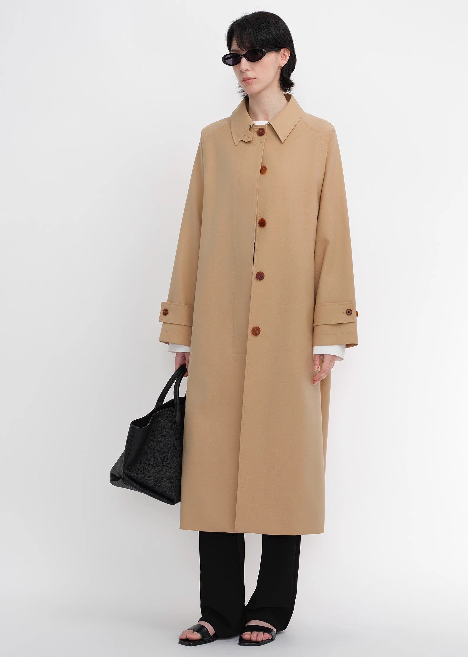 Classic and fashionable wool blend lapel one-button raglan sleeve trench coat, neat and smooth high-quality wool blend, breathable and stylish fabric, skin-friendly and smooth, can be worn in all seasons. The classic trench coat is casual and practical, the raglan sleeves are lazy and comfortable, and the visual effect is simple and neat. The fashion sense one-button minimalist design is fashionable and relaxed without losing the agility and elegance.
