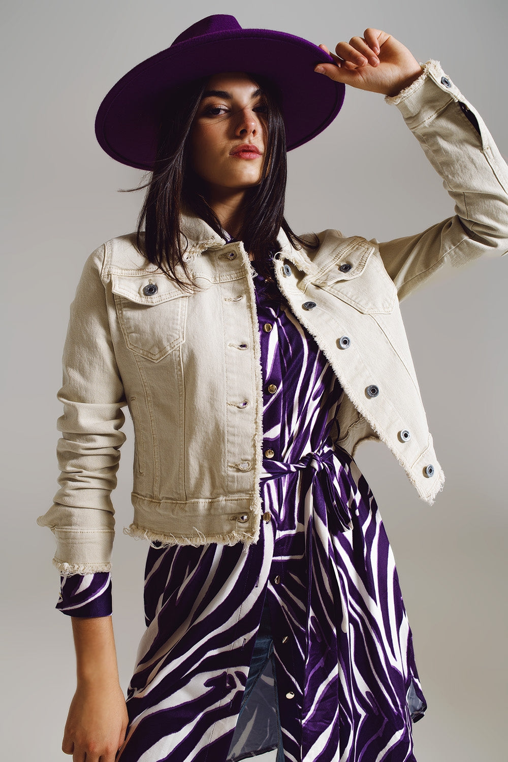 Raw Edge Denim Jacket in Beige