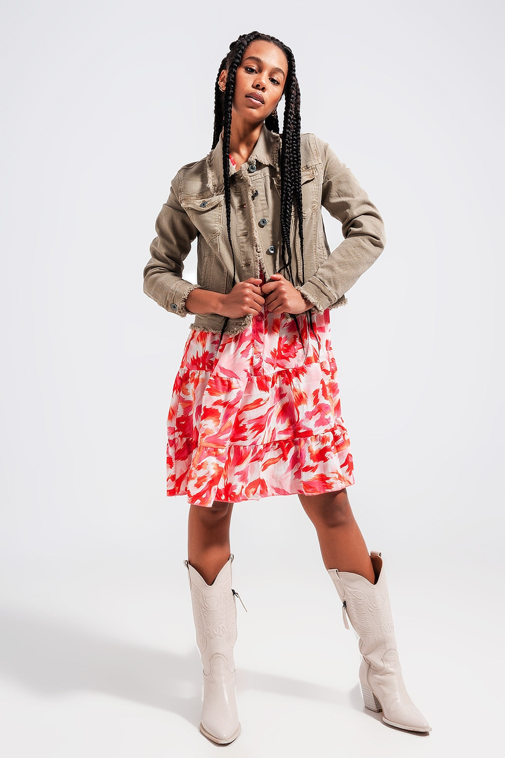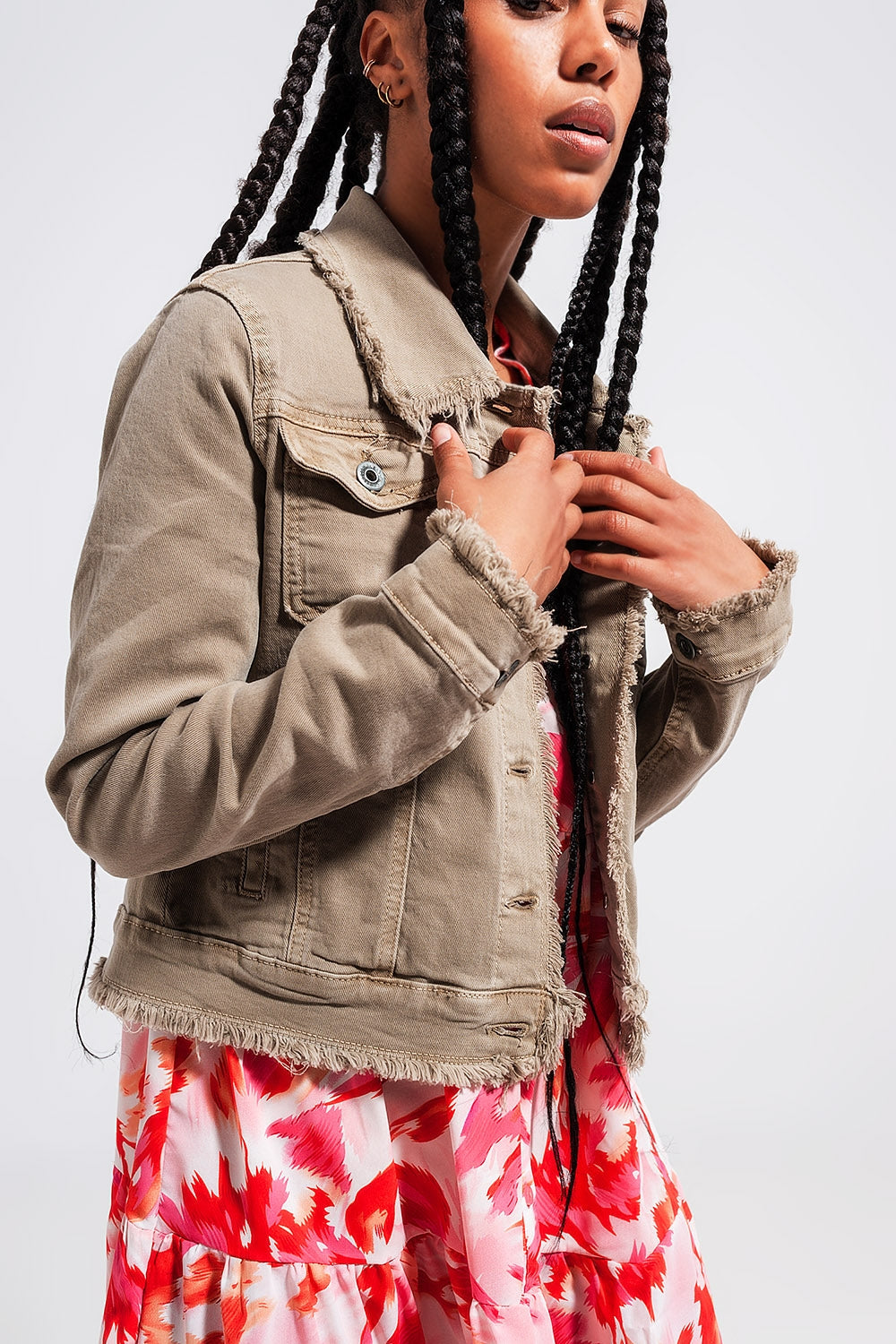 Raw Edge Denim Jacket in Gray