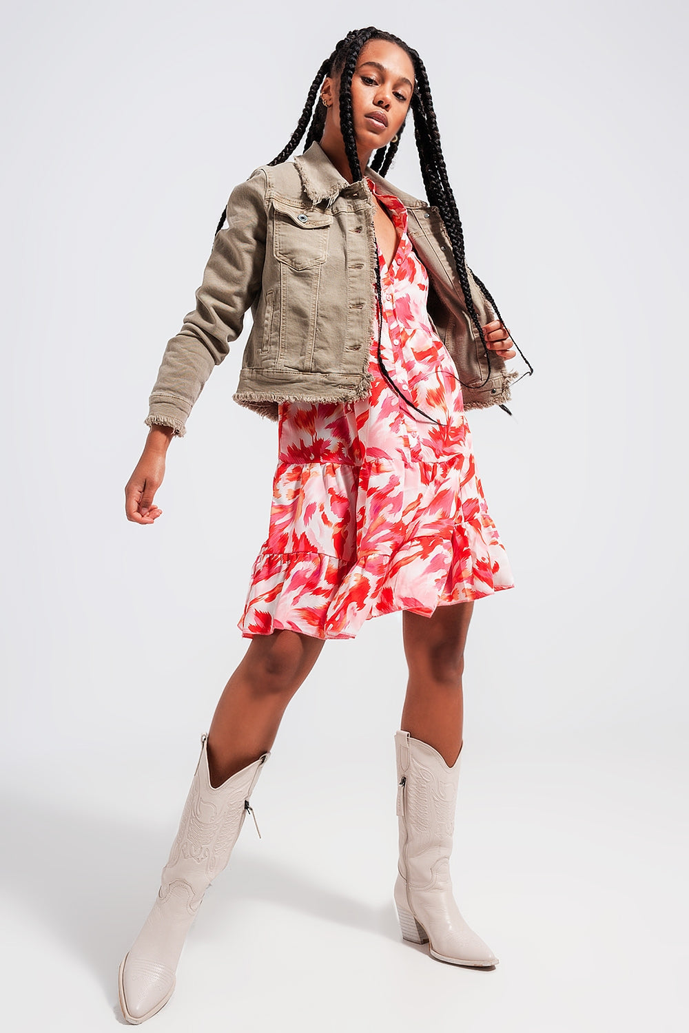 Collar: Wide collar neckline. Fabric: Stretch denim. Fit: Bodycon fit. Jean type: Distressed design. Length: Cropped length. Pockets: Chest pockets. Product details: Functional pockets. Seam: Frayed ends. Sleeves: Long Sleeves. Style: Casual. Subcategory: Denim jacket. Zipper: Button placket. runs true to size. S.
