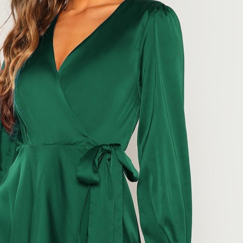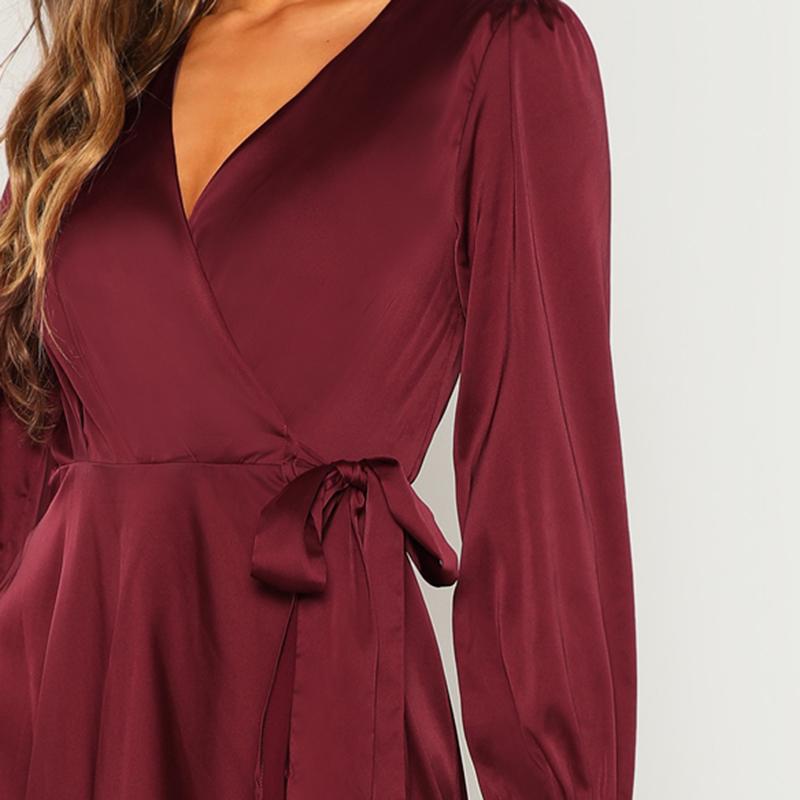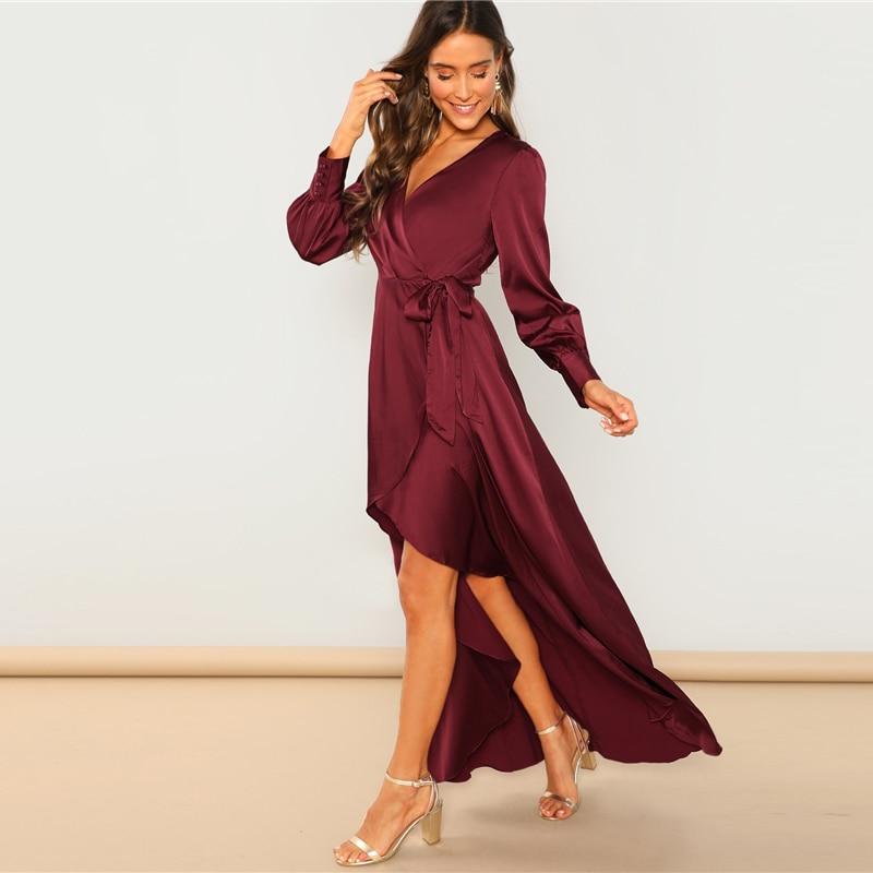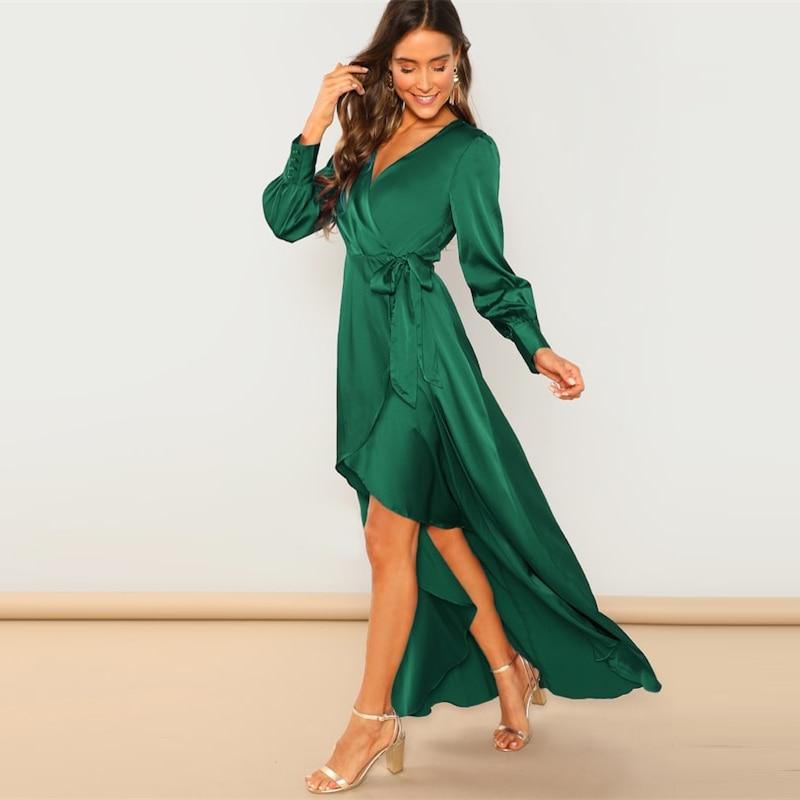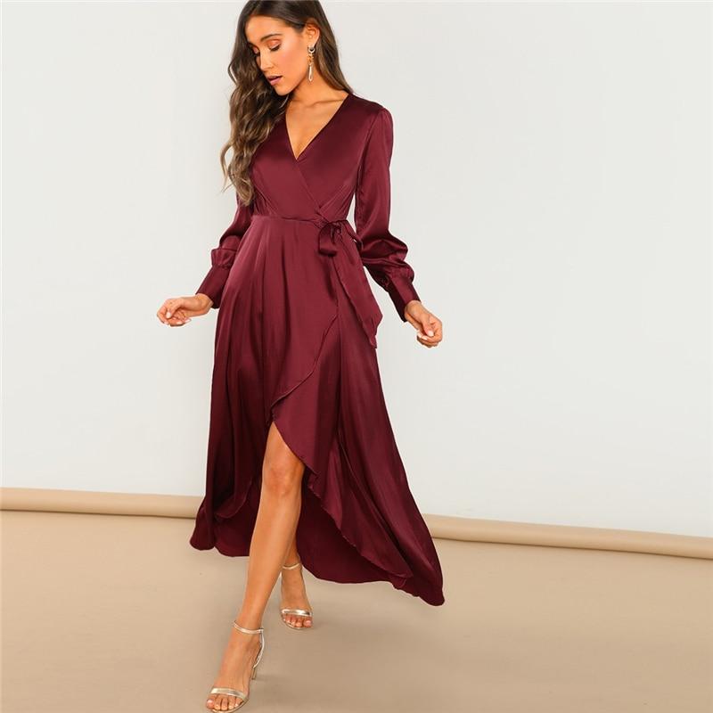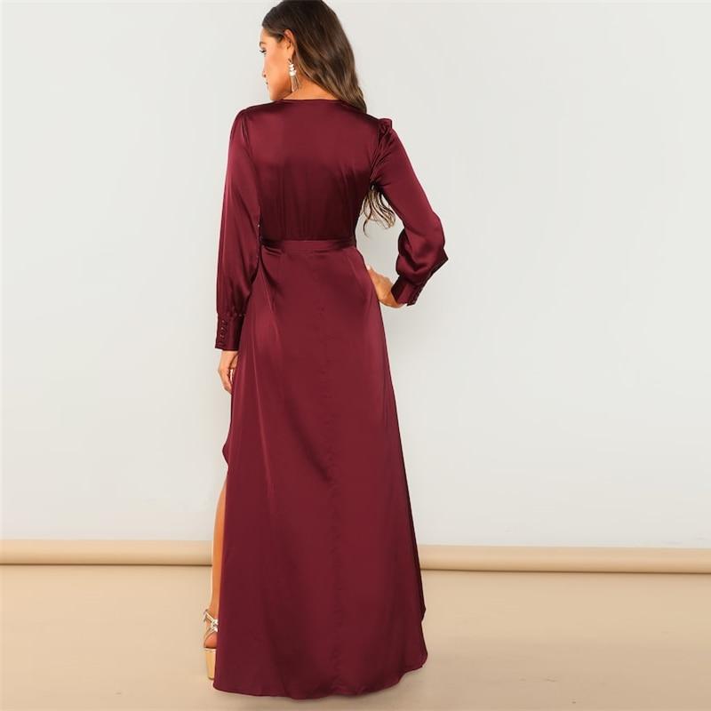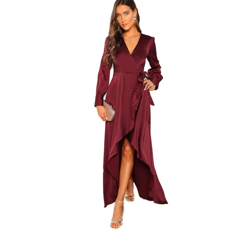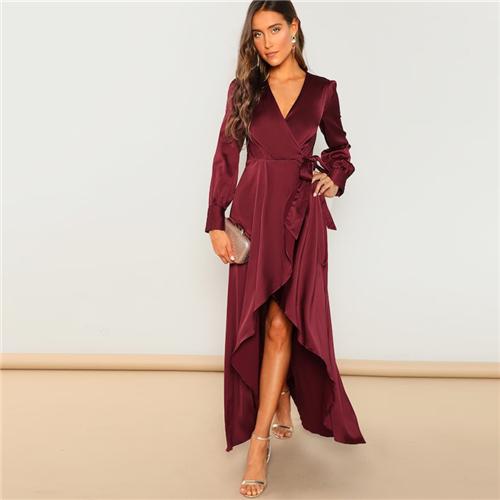 V-Neck Belted Wrap Asymmetric Party Maxi Dress